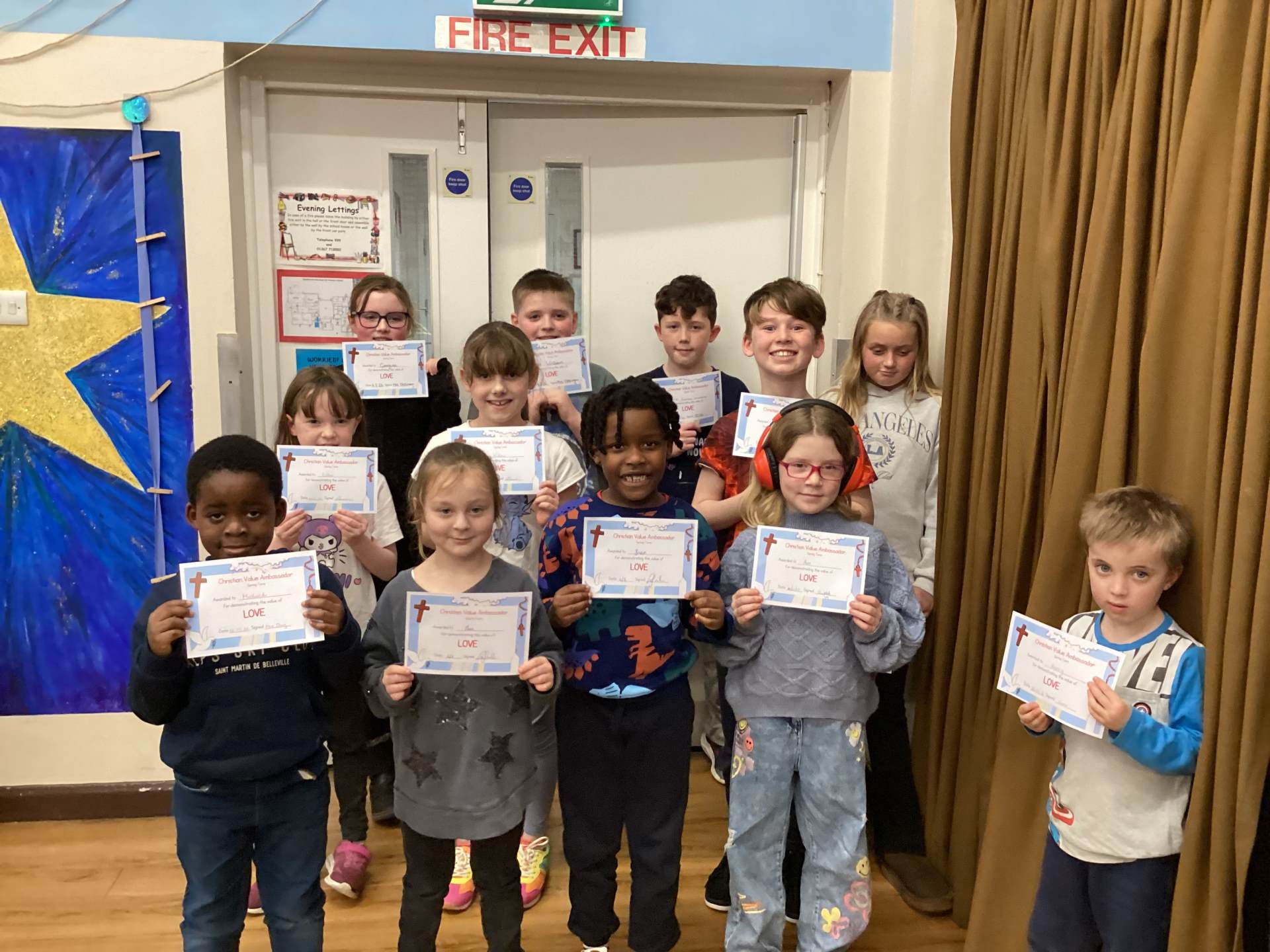Two children from each class are chosen each half term to get a certificate and badge for demonstrating the Christian value of the term the best in their class.